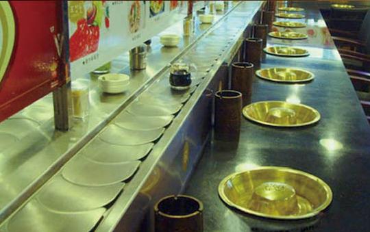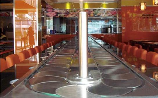 旋轉(zhuǎn)火鍋設備 火鍋店設備 回轉(zhuǎn)火鍋設備主要用于日本料理、韓國料理、西餐廳及自助餐廳等等,速度為0-5米/分鐘可調(diào)節(jié),鏈板為特制月牙形不銹鋼鏈板,其設備安 裝后,業(yè)主可根據(jù)自身情況可進行裝修,客人用餐臺面可用大理石或?qū)嵞狙b修,設備還可根據(jù)業(yè)主餐廳布置的要求,來做不同形狀,其價格合理,外觀精美,無噪音等特點;疱伨,旋轉(zhuǎn)壽司線,旋轉(zhuǎn)火鍋線結(jié)構(gòu)概要: