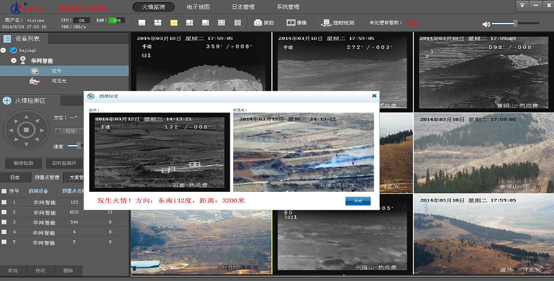 hw-slfh-v2.0森林防火監(jiān)控系統(tǒng)軟件是華網(wǎng)智能從森林防火的實際需求出發(fā),利用數(shù)字化網(wǎng)絡視頻技術、智能煙火識別與定位技術、gis地理信息系統(tǒng)技術和軟件平臺技術等,基于光電平臺開發(fā)的森林防火智能化監(jiān)控預警系統(tǒng)軟件。