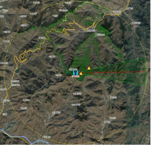在火情產生后的第一時間,通過dem 數(shù)據(jù)定位方法,解算出目標坐標,包括經緯度、海拔等,同時在電子地圖中標記火點。
