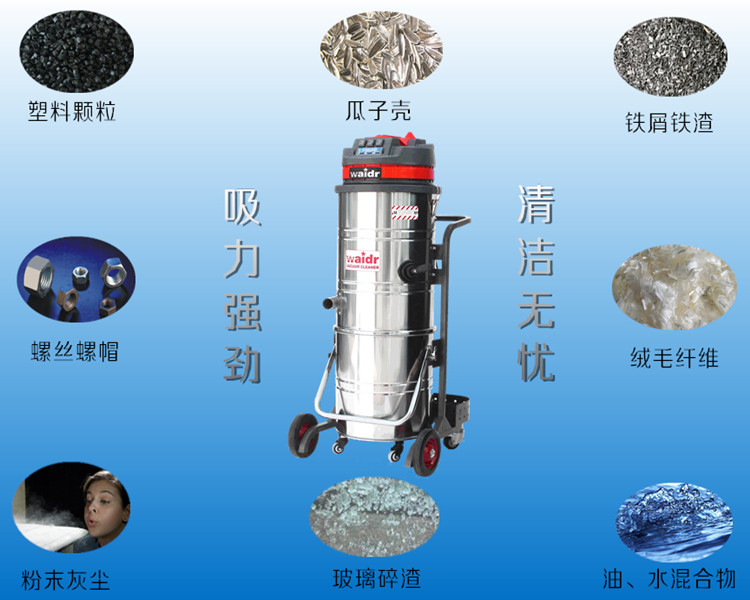 7. 可吸取:地面灰塵、粉 塵、顆粒、液體、醫(yī) 藥、電子、食品加工、機(jī)械制造、潮濕固態(tài)物質(zhì),金屬加工等場(chǎng)所,可與生產(chǎn)線或生產(chǎn)設(shè)備配套使用、(可加裝固液分離桶)。