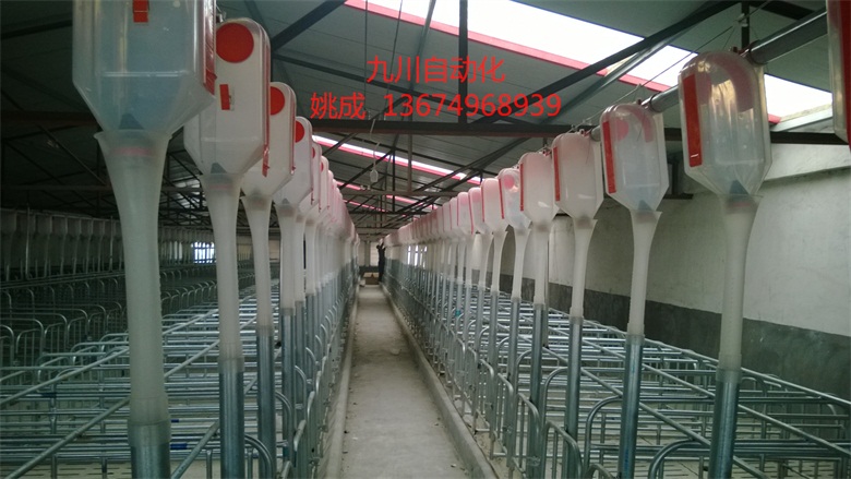 豬場自動供料系統(tǒng)由料塔(儲料倉)、變徑料口、動力系統(tǒng)、輸料管線、控制箱等部分組成,豬場把飼料放在料塔中,然后通過動力系統(tǒng)、輸料管線把料輸送到豬舍內(nèi)部,進(jìn)而輸送到每頭豬的料槽中,當(dāng)最后一個料槽上滿料后,通過傳感器自動關(guān)停動力箱,從而使用自動化供料。