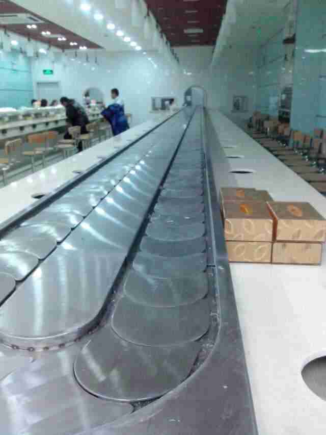 旋轉(zhuǎn)自助火鍋設(shè)備 回轉(zhuǎn)自助火鍋設(shè)備主要用于日本料理、韓國料理、西餐廳及自助餐廳等等,速度為0-5米/分鐘可調(diào)節(jié),鏈板為特制月牙形不銹鋼鏈板,其設(shè)備安 裝后,業(yè)主可根據(jù)自身情況可進(jìn)行裝修,客人用餐臺面可用大理石或?qū)嵞狙b修,設(shè)備還可根據(jù)業(yè)主餐廳布置的要求,來做不同形狀,其價格合理,外觀精美,無噪音等特點;疱伨,旋轉(zhuǎn)壽司線,旋轉(zhuǎn)火鍋線結(jié)構(gòu)概要: