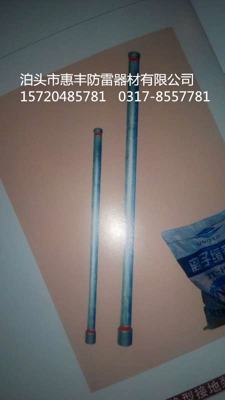 ◎50mm鋼管.鋼管內(nèi)包括自然電解鹽 ,滲透到周圍土壤有效地改善接地棒與土壤之間的接觸。