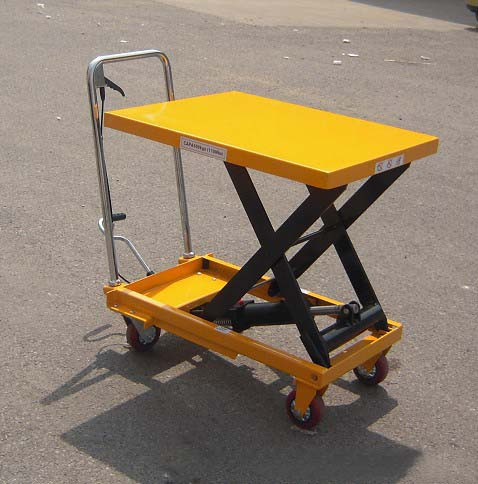 手動液壓平臺車(腳踏平臺車,液壓手推車,升降平板車),是一種小型升降機械,主要用于小范圍的升降,物品提取、擺放,還用于搬運小型貴重物品。產(chǎn)品外觀大方美觀、結(jié)構(gòu)牢固、穩(wěn)定安 全可靠,內(nèi)在性能和使用壽命已達到同等設(shè)備先進水平。目前市場主流為液壓驅(qū)動升降,由于體積小巧,移動方便廣泛應(yīng)用于物流運輸、倉庫管理,圖書館、超市、及普通小型設(shè)備制造業(yè)