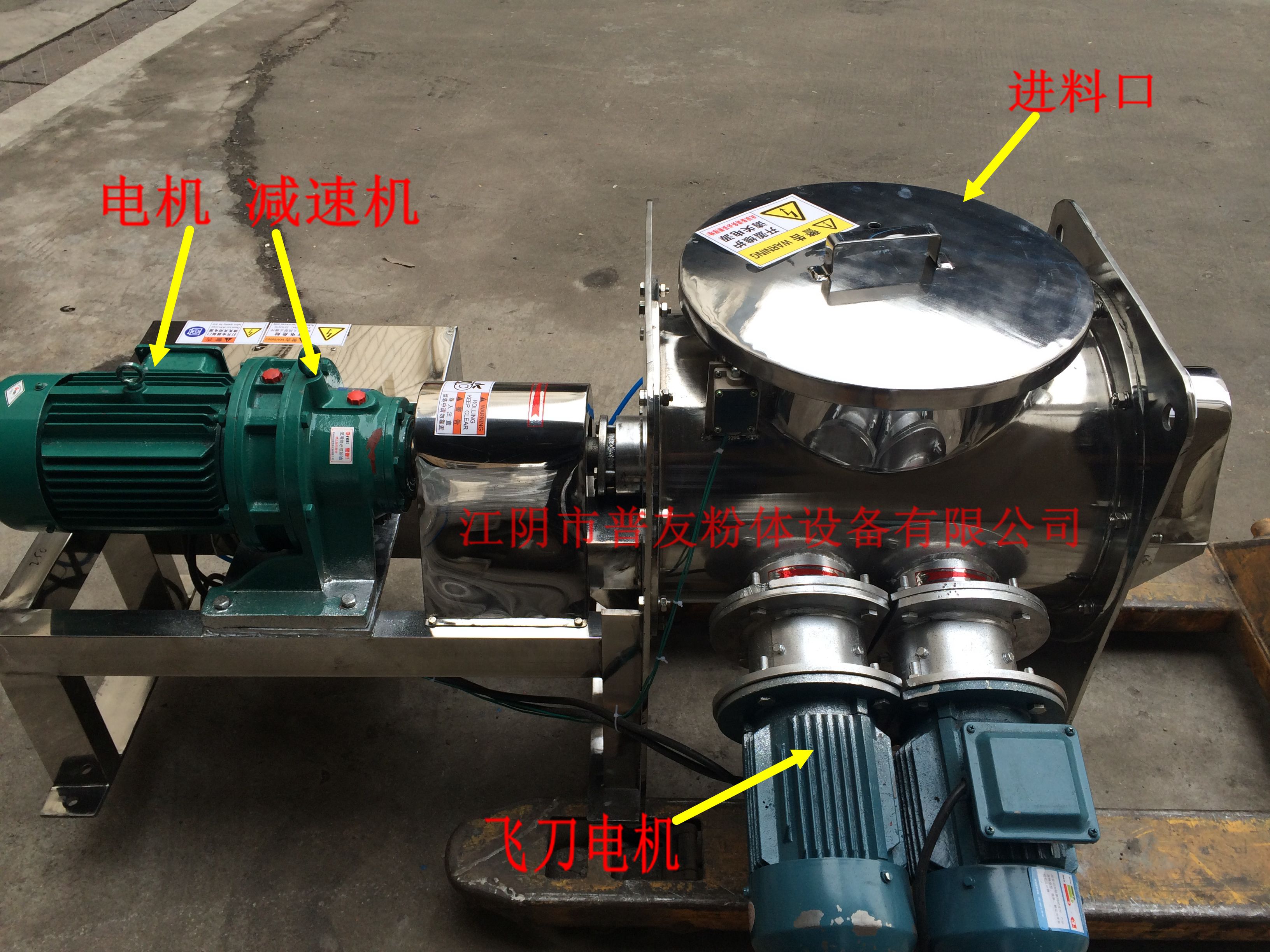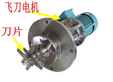 多層刀片的飛刀組與電機(jī)直連,標(biāo)準(zhǔn)轉(zhuǎn)速一般為1450r/min;根據(jù)物料特性的差異,飛刀有多種形狀和轉(zhuǎn)速選擇。攪拌漿葉一般為85 r/min,傾斜成一定角度。
