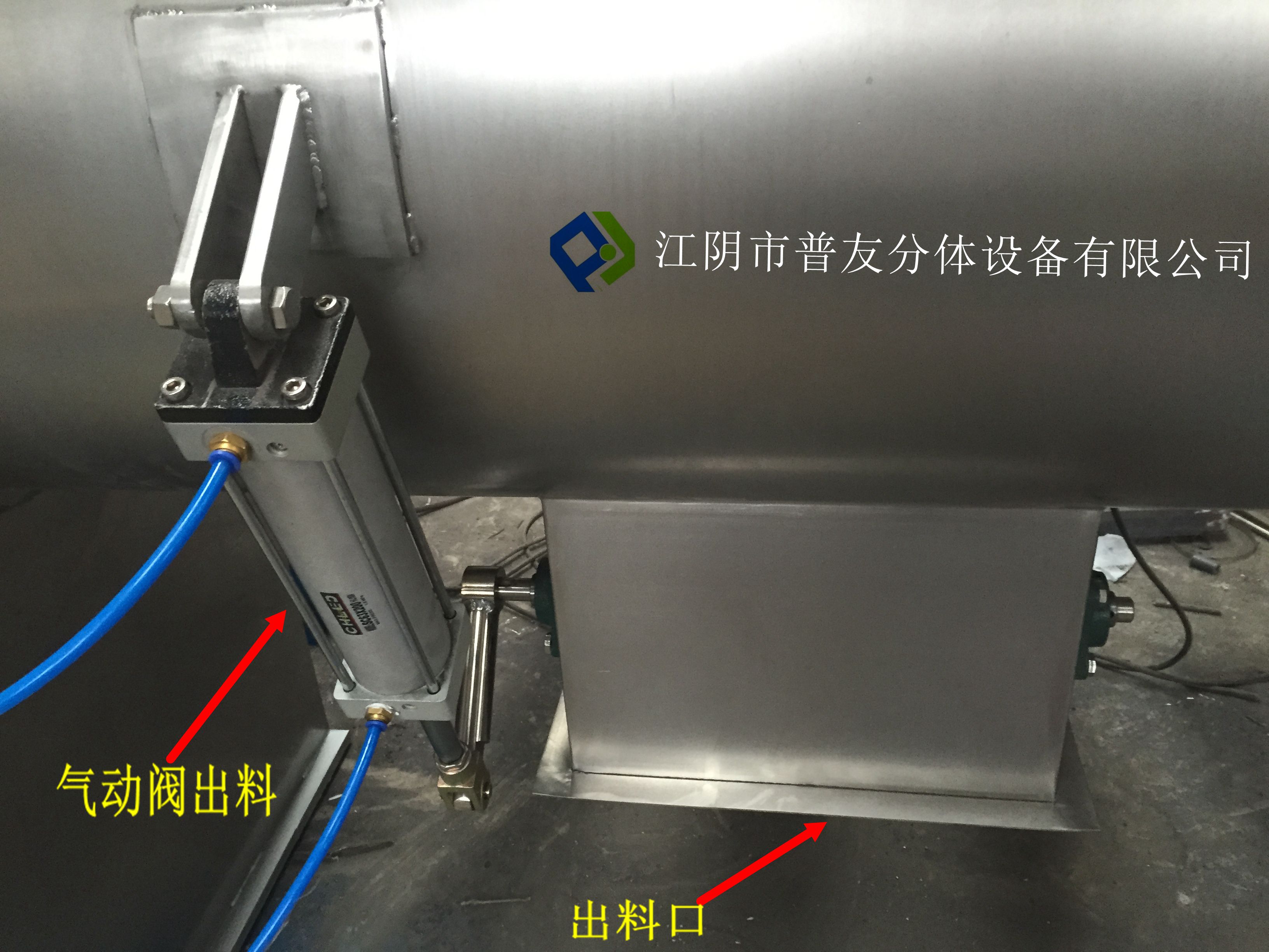 此類型混合機(jī)亦可做成連續(xù)式混合機(jī),主要有氣動(dòng),電動(dòng)及手動(dòng)方式,通過(guò)調(diào)整出料閥的開(kāi)口大小來(lái)控制物料在筒體內(nèi)的滯留時(shí)間,以達(dá)到控制混合均勻度的目的。