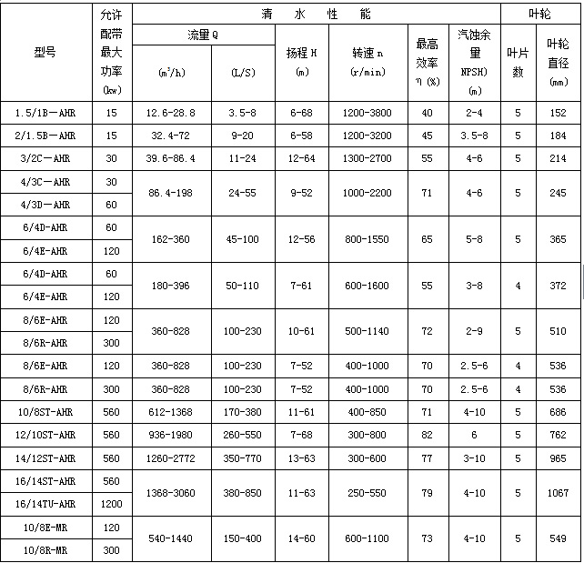 渣漿泵類型:ah為渣漿泵,ahr為襯膠渣漿泵,hh為高揚程渣漿泵