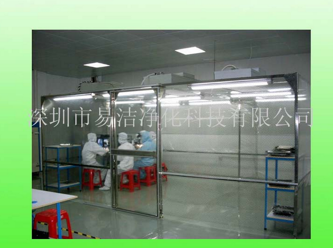 潔凈棚材料以鐵方通噴塑作為框架,采用風(fēng)機濾網(wǎng)機組ffu送風(fēng),四周圍及頂部用防靜電密封,形成一個密縫區(qū),內(nèi)部凈化級別可達百級,千級,萬級,10萬級,30萬級;特別適用于車間內(nèi)局部凈化級別要求高的區(qū)域,如流水線作業(yè)區(qū)域。高精確度產(chǎn)品組裝區(qū)。