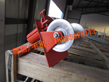 管口放線滑車 用途:用于保護電纜延放,減少電纜表皮摩擦,使電纜順利進入電纜管內(nèi),可按牽引需要的任何角度放置于 孔口電纜滑車