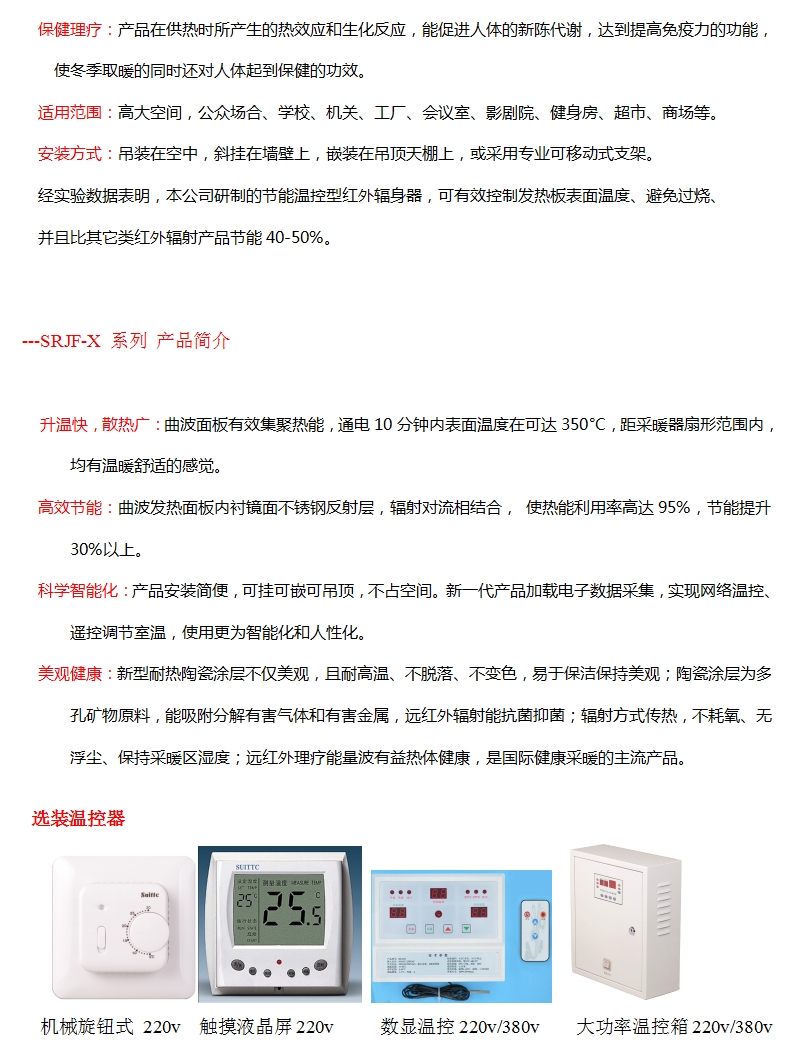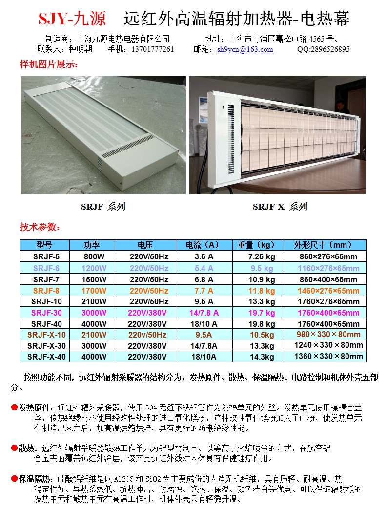 以上是上海九源電熱電器有限公司廠家直供srjf-5電熱幕 遠紅外采暖器的詳細信息,如果您上海九源電熱電器有限公司廠家直供srjf-5電熱幕 遠紅外采暖器的價格、廠家、型號、圖片有什么疑問, 請 聯(lián)系供應(yīng)商 或 請供應(yīng)商聯(lián)系我