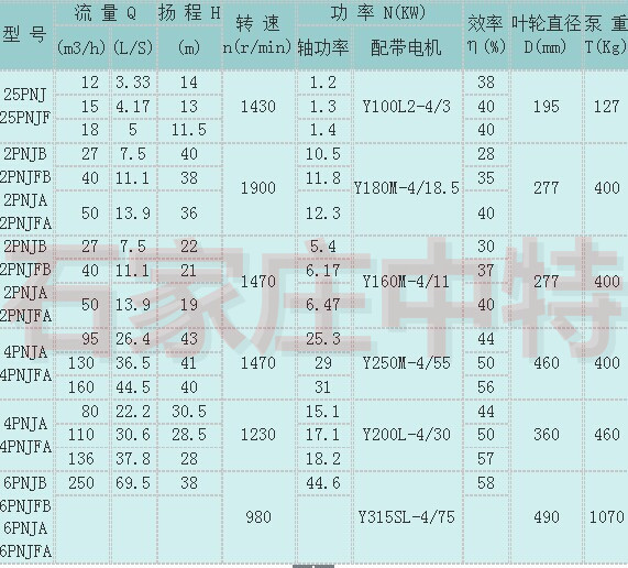 2,pnj膠泵/襯膠泵的葉輪與護套及葉輪與護板之間的間隙可以調整,以保持高效率工作。膠泵/襯膠泵的軸封形式有付葉輪和填料兩種結構。當襯膠泵采用付葉輪密封結構時,進口灌注高度不得超過5m;采用填料密封時,應注入高于工作壓力1kg/cm2的軸 。石家莊中特工業(yè)泵pnj型襯膠泥泥漿泵、25pnj膠泵