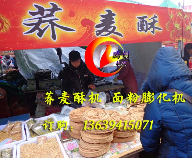 面粉 膨化機(jī)做出的膨化果可手工纏繞成圈,被稱為是蕎麥 酥,香甜可口有酥脆,現(xiàn)場制作吸引客戶且方便銷售: