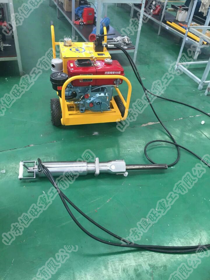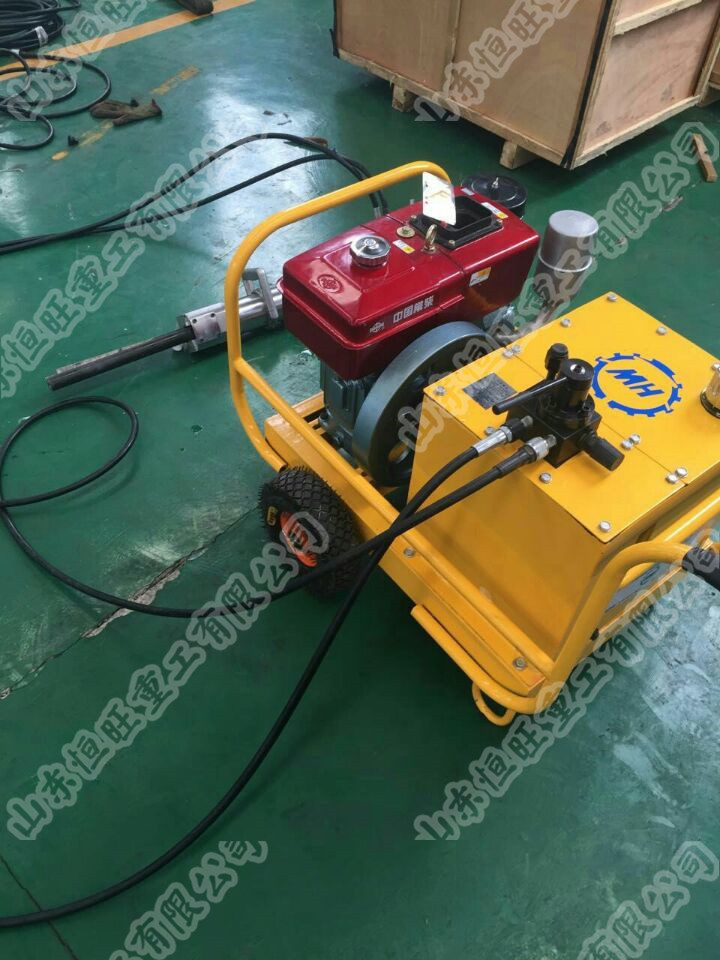 液壓劈裂機是以動力站產(chǎn)生的高壓液壓油為能量源,通過油管輸送到各個劈裂機 (又名劈裂槍、分裂機)的油缸管,控制劈裂機內的活塞桿的推動伸縮,并巧妙的應用了楔器原理,使劈石作用力達到幾百噸甚至上千噸,任何物體都有其自身的特點,巖石和混凝土具有極高的外部抗壓強度,而從內部向外的抗拉強度卻很小,其抗壓與抗拉強度液壓分具有100:2--10的差異,處于脆性狀態(tài)。劈裂機抓住巖石與混凝土呈脆性特點,利用楔塊原理來設計的--在最狹窄的孔中向外能夠釋放出極大的分裂力。由泵站輸出的高壓油,驅動油缸,產(chǎn)生巨大推力,驅動楔塊組中的中間楔塊向前駛出,將反向楔塊向兩邊撐開。所以用劈裂機可以在幾秒鐘內輕易地把巨石劈裂開,使堅硬的礦石從山體中分離。