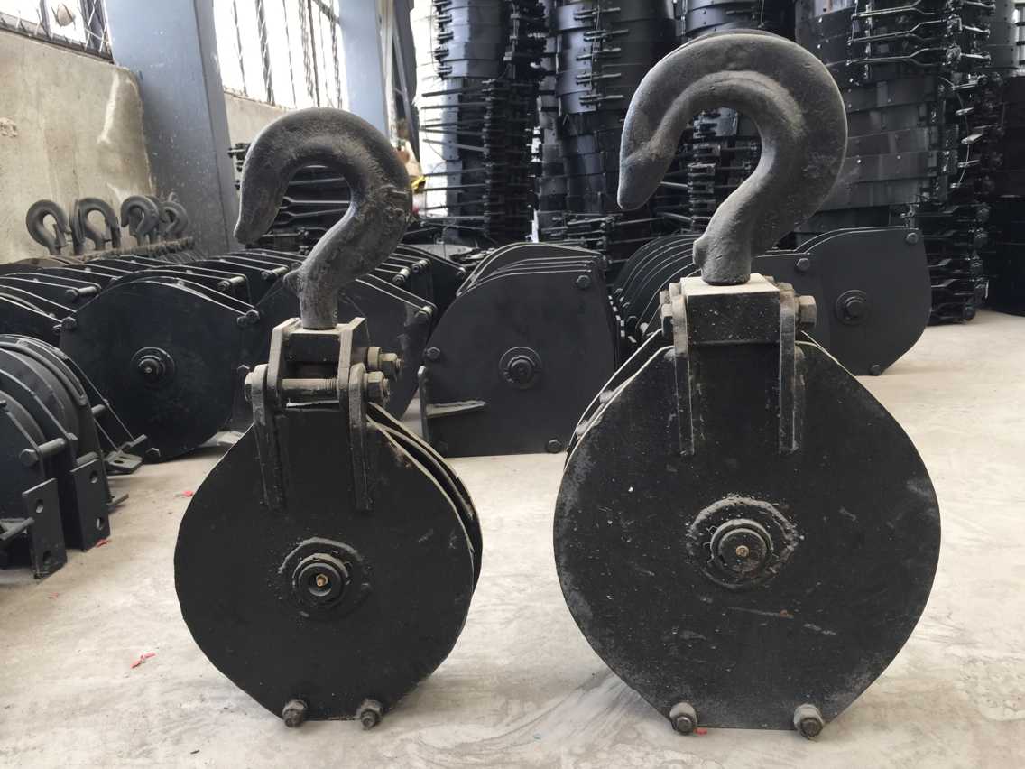 尾輪是配合耙斗裝巖機(jī)進(jìn)行控制zmjt14耙裝機(jī)耙斗的行進(jìn)方向。根據(jù)請拉力不同,分為5t尾輪,8t尾輪,10t尾輪。耙裝機(jī)尾輪再由于工作量大,經(jīng)常摩擦,是尾輪的使用壽命大大減短,一般屬于礦上的易損件。尾輪結(jié)構(gòu): 尾輪由套筒、調(diào)節(jié)絲杠、腳輪、底座、轉(zhuǎn)向座和銷釘組成,套筒內(nèi)套裝有調(diào)節(jié)絲杠,調(diào)節(jié)絲杠的一端安 裝有搖把,另一端通過調(diào)整絲母與腳輪架連接,腳輪架與腳輪連接;轉(zhuǎn)向座通過銷釘與底座連接,底座與轉(zhuǎn)向座上分別設(shè)有相同中心距的對應(yīng)孔,u型銷釘依次插入至轉(zhuǎn)向座和底座對應(yīng)孔內(nèi),u型螺栓將底座固定在拖車的矩形管內(nèi)的。尾輪作用: 耙斗裝巖機(jī)帶有氣動推車缸,礦車裝滿后,可用風(fēng)動推車缸將重車推出,以減輕工人的勞動強(qiáng)度,縮短調(diào)車時間,提高掘進(jìn)速度。 尾輪是掛在固定楔上,用以引導(dǎo)尾輪繩,使耙斗返回工作面。