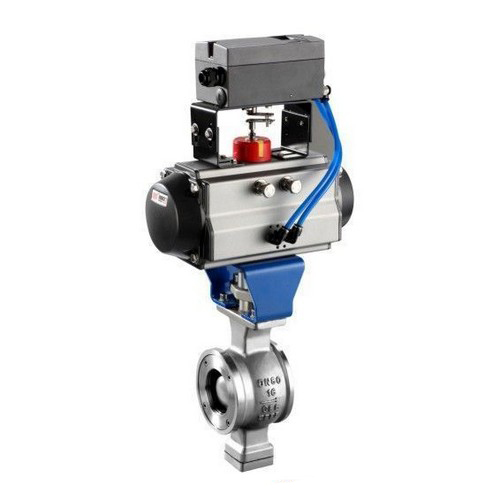 進口氣動調(diào)節(jié)v型球閥由氣動活塞式執(zhí)行機構和帶v型切口的部分球面形的整體式球閥組成;以壓縮空氣為動力源,接受控制系統(tǒng)來的4—20ma dc(0—10madc)訊號,通過電氣轉(zhuǎn)換器或電—氣閥門定位裝置將電信號轉(zhuǎn)換成閥門動作所需要的氣信號,對球閥進行調(diào)節(jié)。