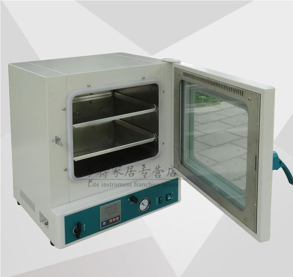 電熱真空干燥箱外殼由鋼板沖壓折制、焊接成型,外殼表面采用高強度的靜電噴塑涂裝處理,漆膜光滑牢固。工作室采用碳鋼板或不銹鋼板折制焊接而成,工作室與外殼之間填充保溫棉。工作室的內(nèi)部放有試品擱板,用來放置各種試驗物品,工作室外壁的四周裝有云母加熱器。門封條采用硅橡膠條密封,箱門上設(shè)有可供觀察用的視鏡。電熱真空干燥箱的抽空與充氣均由電磁閥控制,電器箱在箱體的左側(cè)或下部,電器箱的前面板上裝有真空表、溫控儀表及控制開關(guān)等,電器箱內(nèi)裝有電器元