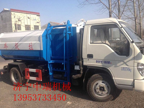 利用液壓機(jī)構(gòu)自動將垃圾箱舉升至貨箱頂部并將垃圾倒入車箱內(nèi)部,再自動將垃圾箱放置地面;車輛箱內(nèi)垃圾滿后,可以通過舉升貨箱來通過貨箱后門把垃圾卸至垃圾處理廠。