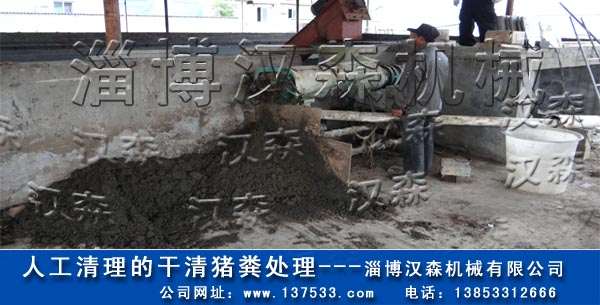 2:粘稠人工清理出高含水豬糞,采用螺旋輸送機(jī)或人工上料方式,將豬糞污壓榨分離出去。獲得含水率55%的固態(tài)豬糞。