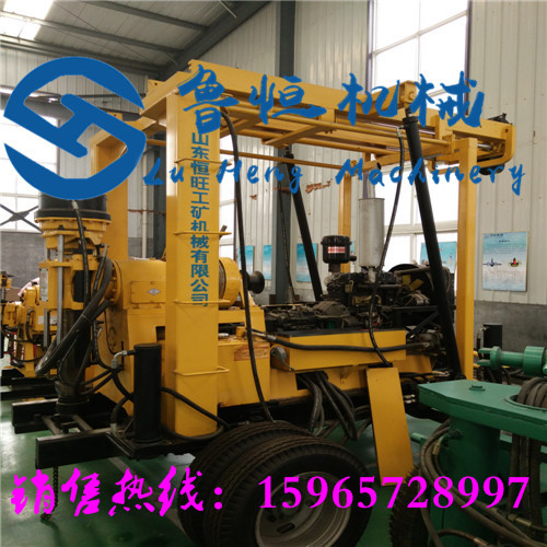 1、該鉆機裝有輪式行走機構(gòu)及液壓油缸支柱,整機搬遷方便,便于鉆機的水平調(diào)整;