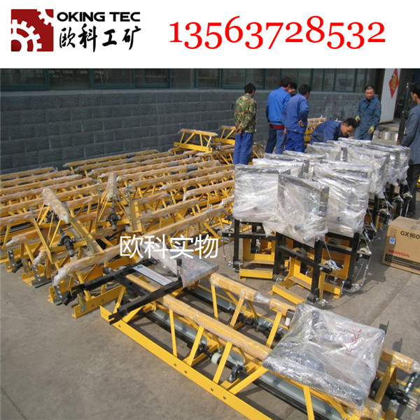 我們生產(chǎn)的框架式振動梁分為電動框架式振動梁和汽油機框架式振動梁,電動框架式振動梁的一般有4kw電機、5.5kw電機和7.5kw電機,汽油機有5.5hp/9hp/13hp,一般1-8米配5.5hp汽油機,9-12米配9hp汽油機,13-18米配13hp汽油機,框架式整平機提漿整平深度可達260mm,振動頻度70hz,標(biāo)準(zhǔn)單節(jié)有一米一節(jié),有兩米一節(jié),一米自重40kg。框架式整平機中間靠萬向節(jié)連接,振動軸采用日本nsk進口軸承,壽命長達5年