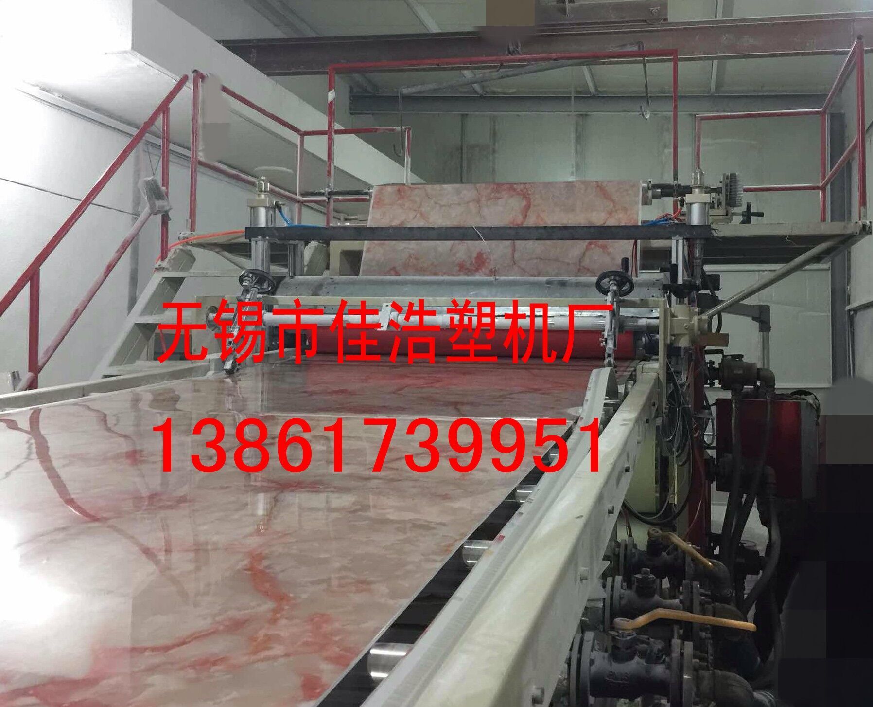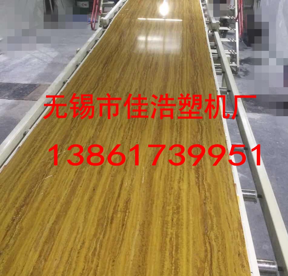pvc仿大理石板材生產(chǎn)線:由無錫佳浩塑機(jī)廠引進(jìn)先進(jìn)技術(shù),設(shè)備由自動(dòng)上料進(jìn)入高速混料機(jī)混合、再自動(dòng)上料到sjsz80雙螺桿擠出機(jī)、由仿大理石專用板材模具擠出進(jìn)行三輥定型模定型、排輥托冷裝置、裁邊裝置、牽引機(jī)、自動(dòng)切割機(jī)、排輥輸送機(jī)等組成。后續(xù)處理工藝分兩種:一種可以實(shí)現(xiàn)在線uv,一種需要二次加工,仿大理石板材機(jī)械設(shè)備結(jié)構(gòu)緊湊,性能優(yōu)越。螺桿、螺筒經(jīng)優(yōu)化設(shè)計(jì),并采用高性能合金鋼專業(yè)加工,使整體機(jī)械及模具有塑化均勻,擠出量穩(wěn)定,產(chǎn)量高,壽命長(zhǎng)等優(yōu)點(diǎn)。主機(jī)螺筒采用鑄鋁加熱器加溫,風(fēng)冷卻,精密電控儀表控制溫度。精密的定型壓光裝置,通過其良好的調(diào)整功能使板材定型優(yōu)良。切割部分采用自動(dòng)化定長(zhǎng)切割裝置,也可使用機(jī)械手裝置,保證板材長(zhǎng)度精確。板材擠出設(shè)備有錐形雙螺桿擠出機(jī),板材模具,三輥定型、牽引等輔機(jī)部分組成,實(shí)現(xiàn)一機(jī)多用,可以生產(chǎn)仿實(shí)木板材、實(shí)心硬質(zhì)pvc板材、自由發(fā)泡板材、pvc軟質(zhì)卷材等等。
