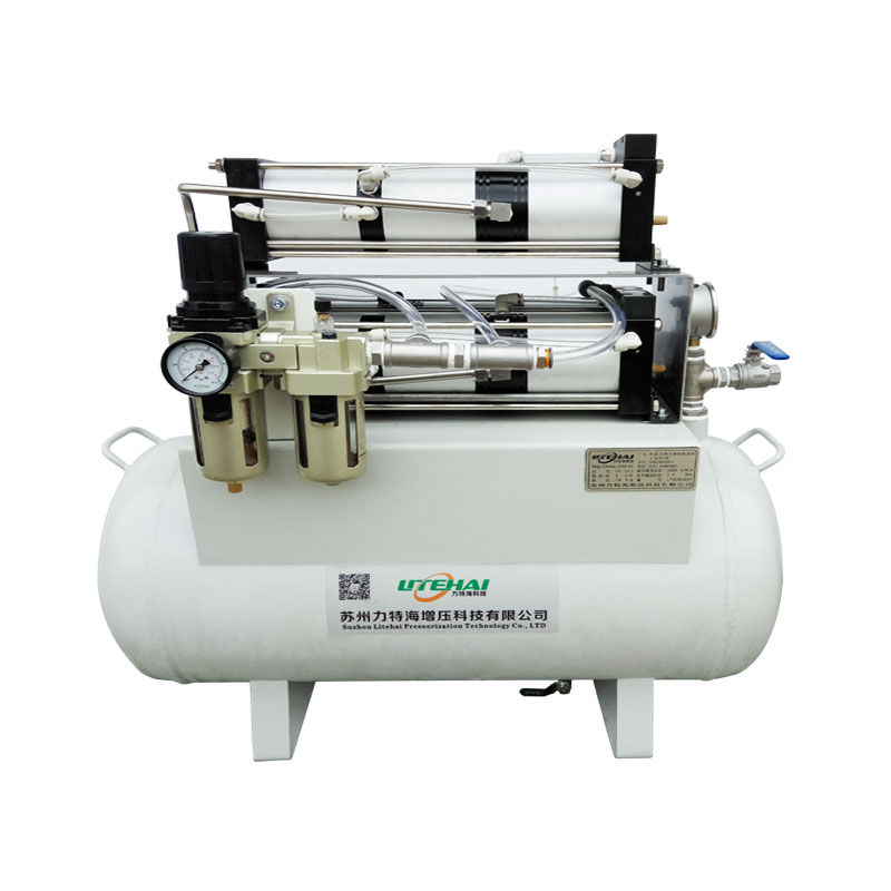 1.主要用于工廠壓縮空氣的二級(jí)增壓,可以方便解決工廠壓縮空氣氣源壓力不足的問題,空氣壓力可由1-8kg增壓至2-40 kg等更高的壓力。