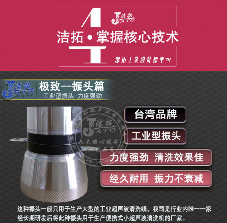 6、采用優(yōu)質(zhì)進(jìn)口部件,超聲波功率轉(zhuǎn)換效率高、功率強(qiáng)勁、清洗效果好
