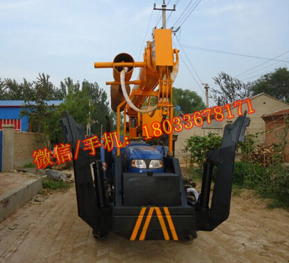鉆孔立桿一體機(jī)為本廠獨(dú)立研發(fā)的新型工程設(shè)備,該設(shè)備采用 四輪驅(qū)動(dòng)的拖拉機(jī)作為動(dòng)力,集合鉆孔挖坑,吊裝電桿為一體,挖坑直徑可到達(dá)。0.6米,標(biāo)準(zhǔn)深度:3米。鉆孔立桿一體機(jī)起吊高度分為:12米型、15米 型,起吊重量為3t、5t. 采用四輪驅(qū)動(dòng)拖拉機(jī)改裝而成,越野性能好。鉆孔立桿一體機(jī)大大擺脫了普通吊車收地形限制的局限性,可以方便引用于狹窄的小巷,鄉(xiāng)間田野,水田,丘陵等地 帶。特別適合于電力施工單位及其他在狹窄區(qū)域能作業(yè)的施工單位。