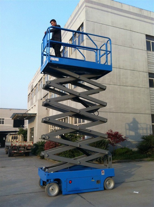 zsjy型自行式伸縮臺(tái)面升降機(jī)特點(diǎn): 自行走雙桅柱升降機(jī):自行走式升降機(jī),具有自動(dòng)行走功能,能夠在不同工作狀態(tài)下,不需外接電源,不需人工牽引,移動(dòng)靈活、操作方便、升降自如,只需一人便可完成前進(jìn)、后退、轉(zhuǎn)向、快、慢速行走和上下等動(dòng)作,省工、省力。特別適用于車站、碼頭、機(jī)場(chǎng)、體育場(chǎng)館、大型企業(yè)等較大范圍的高空作業(yè),目前在國(guó)內(nèi)是最理想的高空作業(yè)設(shè)備。該系列產(chǎn)品為雙桅柱液壓升降系統(tǒng),具有穩(wěn)定性強(qiáng)等特點(diǎn)。zsjy型自行式伸縮臺(tái)面升降機(jī)性能及參數(shù):型 號(hào)zsjy0.3-6zsjy0.3-8zsjy0.3-10 工 作 臺(tái)(mm)1900×800mm2150×1000mm2600×1000mm 伸縮臺(tái)面(mm)600mm600mm600mm 起升高度(mm)6000mm8000mm10000mm 額定載荷(㎏)300kg(伸出臺(tái)面100kg)300kg(伸出臺(tái)面100kg) 300kg(伸出臺(tái)面100kg) 外形尺寸(mm)1900×800×1250(不含護(hù)欄)2300×1000×1310(不包括護(hù)欄)2750×1150×1560(不包括護(hù)欄) 自身重量(kg)1350kg1860kg2300kg 行走速度(km/h)0~4.8 km/h0~5.0km/h0~5.0km/h 升降速度(m/min)3~5m/min3~5m/min3~5m/min 功 率(kw)行走1.2kw/泵站2.0kw行走1.2kw/泵站2.5kw行走1.2kw/泵站2.5kw 電 源dc24v電瓶容量240ahdc24v電瓶容量400ahdc24v電瓶容量400ah