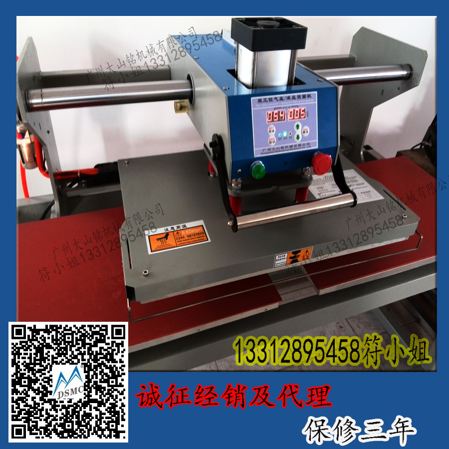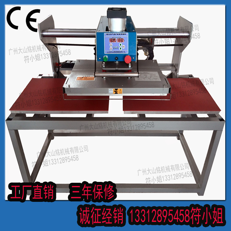 本機(上滑式雙工位燙畫機)可將升華類,溶劑 類油墨的彩色圖案與文字經(jīng)熱轉(zhuǎn)印燙在棉,麻 ,化纖等絨物上,還可進行植毛燙畫和發(fā)泡印花、燙鉆、燙金,壓痕等處理,經(jīng)濟又實用。