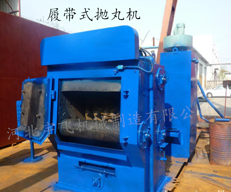 拋丸清理機(jī)為履帶式拋丸清理設(shè)備,由拋丸清理室體、拋丸器總成、丸料循環(huán)凈化系統(tǒng)、除塵系統(tǒng)和電氣控制部分等組成。