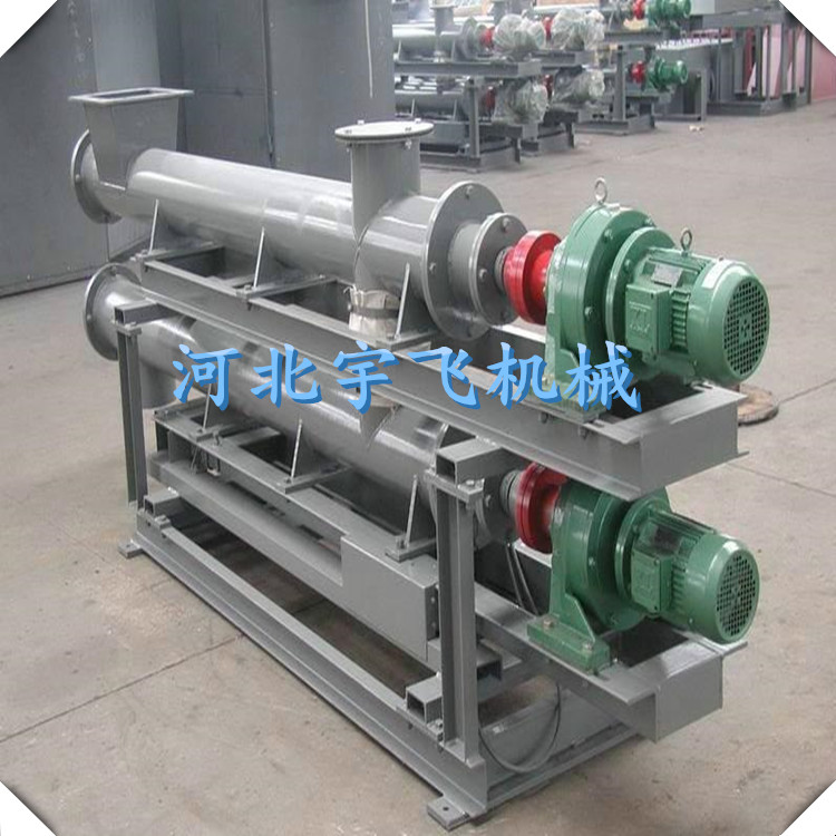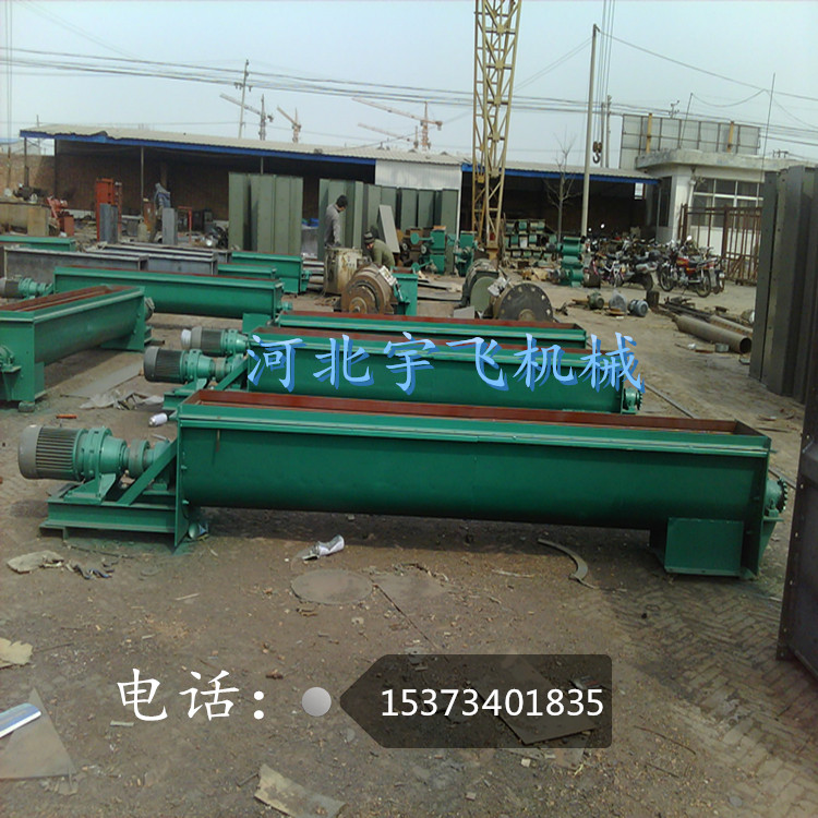 當(dāng)螺旋軸轉(zhuǎn)動(dòng)時(shí),由于物料的重力及其與槽體壁所產(chǎn)生的摩擦力,使物料只能在葉片的推送下沿著輸送機(jī)的槽底向前移動(dòng),其情況好像不能旋轉(zhuǎn)的螺母沿著旋轉(zhuǎn)的螺桿作平移運(yùn)動(dòng)一樣。物料在中間軸承的運(yùn)移,則是依靠后面前進(jìn)著的物料的推力。所以,物料在輸送機(jī)中的運(yùn)送,完全是一種滑移運(yùn)動(dòng)。為了使螺旋軸處于較為有利的受拉狀態(tài),一般都將驅(qū)動(dòng)裝置和卸料口安 放在輸送機(jī)的同一端,而把進(jìn)料口盡量放在另一端的尾部附近。 旋轉(zhuǎn)的螺旋葉片將物料推移而進(jìn)行輸送,使物料不與螺旋輸送機(jī)葉片一起旋轉(zhuǎn)的力是物料自身重量和螺旋輸送機(jī)機(jī)殼對(duì)物料的摩擦阻力。葉片的面型根據(jù)輸送物料的不同有實(shí)體面型帶式面型、葉片面型等型式。螺旋輸送機(jī)的螺旋軸在物料運(yùn)動(dòng)方向的終端有止推軸承以隨物料給螺旋的軸向反力,在機(jī)長(zhǎng)較長(zhǎng)時(shí),應(yīng)加中間吊掛軸承。