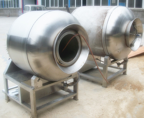 鄭州方圓真空滾揉機(jī)具有肺呼吸功能.采用了市場(chǎng)上比較先進(jìn)的制造技術(shù)和材料。還具有變頻技術(shù)功能、自動(dòng)化、轉(zhuǎn)速可調(diào)等功能。桶內(nèi)采用真空設(shè)置,旋壓式封帽結(jié)構(gòu)使肉料在真空設(shè)備中反轉(zhuǎn)按摩,最大程度增加滾筒內(nèi)的摔打空間。該機(jī)漿葉為圓弧形獨(dú)特設(shè)計(jì)結(jié)構(gòu)。在肉的攪拌過(guò)程中,使腌料分布均勻,能有效的縮短滾滾揉時(shí)間,提高了效率。并且對(duì)產(chǎn)品表層無(wú)傷害,還實(shí)現(xiàn)了自動(dòng)出料,減輕啦勞動(dòng)強(qiáng)度并且提高生產(chǎn)率,?機(jī)械生產(chǎn)的滾揉機(jī)優(yōu)勢(shì)在于整機(jī)采用不銹鋼制造,結(jié)構(gòu)緊湊,滾筒兩端采用旋壓式封帽結(jié)構(gòu),有效地增加內(nèi)部的摔打空間,使產(chǎn)品能程度的均勻地被滾揉,在肉的鮮嫩、色澤、彈性等方面大大提高了肉質(zhì),還有就是,在使用過(guò)程中機(jī)器的噪音小,運(yùn)行平穩(wěn) 、性能穩(wěn)定可靠,操作簡(jiǎn)單出產(chǎn)率非常高。