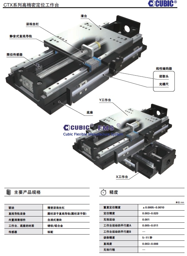 cubic 通過結(jié)合運用精密加工技術(shù)和電子工藝制造出了精密定位工作臺系列產(chǎn)品。從模塊式到高精密式種類繁多。精密定位工作臺系列廣泛應(yīng)用于適合自動化及光電產(chǎn)業(yè)和半導(dǎo)體產(chǎn)業(yè)等很多精密器械的定位機(jī)構(gòu)。