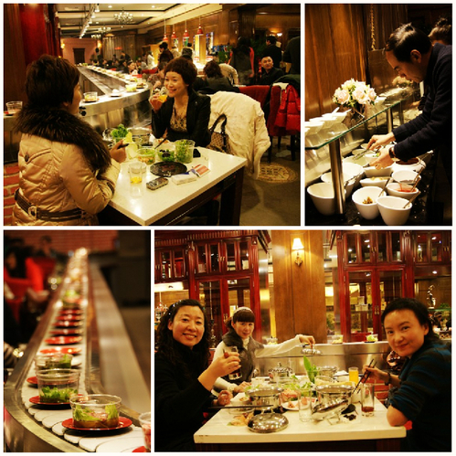 客人只需要坐在自己的位子上,一鍋湯底,菜品自動傳到我們的身邊,只需動動手,就可以拿到自己想要的菜品,來回傳送的精美菜品,更是讓人目不暇接,擁有傳送帶的火鍋店面,更加美觀。