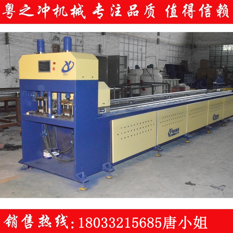 yc-ro-100/120/140型數(shù)控液壓高速沖孔機是我司開發(fā)的新一代全自動液壓高速防盜網(wǎng)、護欄、門花、貨架、展示架、方管、圓管沖孔機,該機在鋼管、鋅鋼、不銹鋼、鋁型材市場得到非常熱烈的歡迎和肯定?杉庸ぶ睆皆讧80、壁厚4.0mm內(nèi)的銅管、鋁管、鐵管、鋼管、槽鋼、角鐵及壁厚為2.0mm的不銹鋼管,亦可加工規(guī)格為80×80mm以下、壁厚4.0mm內(nèi)的不同材質的方管、圓管及異型管。(具體可按客戶要求定做)該機具有良好的穩(wěn)定性、重復性好、效率高等特點,而且能在復雜形狀的管件上加工半孔或全孔。通過更換模具可加工各種不同規(guī)格及形狀的孔徑,該機沖孔平整無,準確,可生產(chǎn)各種新型防盜網(wǎng)(菱形防盜網(wǎng)、梅花防盜網(wǎng)、圓管方管防盜網(wǎng)、亦可做門花、護欄、貨架、展示架、扁鐵、扁鋼、槽鋼、角鐵等沖孔使用)。整機夾緊、升降等機構采用氣壓或液壓控制,工件(x、y坐)由伺服驅動,整機控制采用微電腦控制,通過觸摸屏界面進行參數(shù)設定及操作切換,操作簡單方便,并可儲存100個以上產(chǎn)品加工參數(shù)。