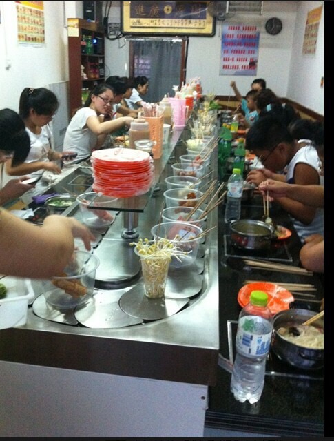客人多的時(shí)候服務(wù)員也不需要忙的熱火朝天,客人只需要坐在自己的位子上,一鍋湯底,菜品自動(dòng)傳到我們的身邊,只需動(dòng)動(dòng)手,就可以拿到自己想要的菜品,