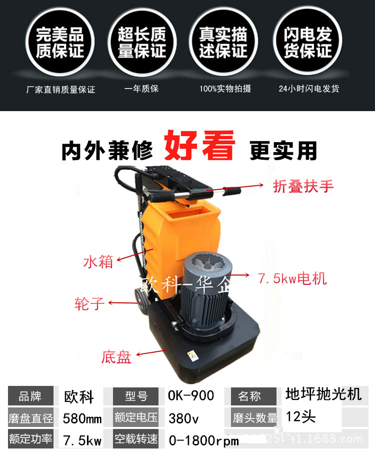 地坪拋光機(jī)產(chǎn)品技術(shù)參數(shù)型號(hào)ok-900工作寬度480*480mm功率7.5kw電壓380v轉(zhuǎn)速1500轉(zhuǎn)/分磨盤280m*4水箱容積35l重量210kg 拋光機(jī)保養(yǎng)常識(shí)及注意事項(xiàng)