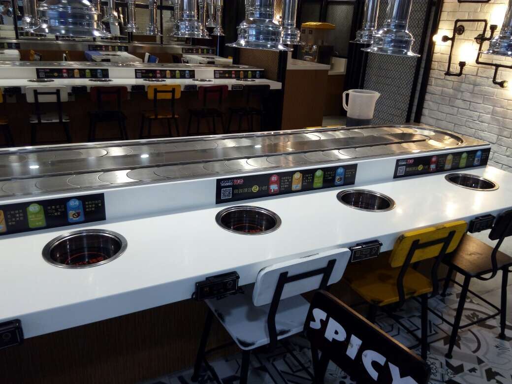 東莞回轉(zhuǎn)小火鍋設(shè)備 東莞旋轉(zhuǎn)小火鍋設(shè)備品牌 旋轉(zhuǎn)火鍋設(shè)備價格 旋轉(zhuǎn)火鍋設(shè)備廠家不需要設(shè)大廚房,整個配制、加工過程,都由顧客在餐桌上自己完成,節(jié)省空間是其一優(yōu)點; 不需要大型灶臺和灶具,無需大廚,