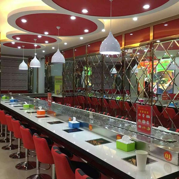 回轉(zhuǎn)火鍋設(shè)備 旋轉(zhuǎn)火鍋設(shè)備是我公司回轉(zhuǎn)輸送設(shè)備是以低價格.高品量贏取客戶的支持。設(shè)備餐臺臺面的裝飾材料可以選擇人造石,大理石,金剛石等,臺下墻裙的裝飾材料可選擇防火板,不銹鋼板、馬賽克、鋁塑板等等。其設(shè)備可根據(jù)店鋪使用面積及客戶要求進(jìn)行設(shè)計(jì)各種形狀。