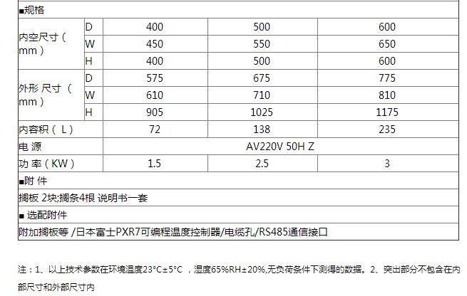 hh系列干燥箱是立式標(biāo)準(zhǔn)型 按上下鍵即可人工輸入?yún)?shù),設(shè)定方便簡單,同時顯示設(shè)定溫度、測量溫度;具有獨立的超溫保護裝置,提高了產(chǎn)品的可靠性和安 全性;采用微電腦pid控制,具有pid自整定功能,確保設(shè)備在任何工作狀態(tài)下都能達到最佳控溫精度;方便的溫度補償功能,較好地避免了顯示溫度值與實際溫度值的誤差;獨特的立式拼裝設(shè)計,使箱體結(jié)構(gòu)更合理,占地面積小,有效利用空間;配備玻璃內(nèi)門或觀察窗,方便觀察試品的試驗情況(選購);產(chǎn)品具有測量溫度達到設(shè)定溫度的定時恒溫功能。用途電子、電工、儀表、材料、半導(dǎo)體等生產(chǎn)企業(yè)對非易燃、非易爆物品進行干燥、烘培及熱處理試驗;學(xué)校、醫(yī) 藥、化工等單位科研及對非易燃、非易爆物品進行干燥、烘培、消毒、保溫及熱處理試驗;特別適用于led、lcd、石英晶體、電容、電阻等要求高恒溫精度和可靠性的產(chǎn)品生產(chǎn)過程的烘干和老化。
