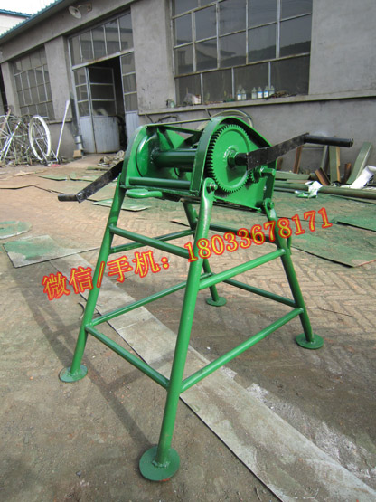 手搖絞磨:主要通過250mm 150mm 80mm三個(gè)齒輪,通過齒輪咬合,逐漸減力的機(jī)械原理,來帶動(dòng)滾軸。主要用于:牽引電纜,水泥桿等重物,立桿,緊線,管道施工等。
