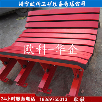 使用用戶沒有按照廠商要求安 裝,皮帶與緩沖床并沒有平行運行,且輸送帶與緩沖條之間并沒有根據(jù)科學(xué)設(shè)計的方式緩沖,導(dǎo)致緩沖條過快的磨耗: 緩沖床使用上,使用者總存在誤區(qū),認(rèn)為是輸送帶直接與緩沖床上緩沖條接觸,其實這是一種錯誤的認(rèn)識,一般正規(guī)的廠商會銷售緩沖床時,均會提供安 裝使用說明,在輸送皮帶與緩沖滑槽床體之間有 20mm 距離,在緩沖床兩頭通過托輥將其輸送皮帶托起, 確保兩者之間的距離.緩沖床設(shè)計原理是在物料下落過程中起到一定的緩沖作用并保護其輸送帶,在物料間接性或長時間與緩沖床接觸,通過緩沖床上緩沖條的彈性橡膠彈性起到很好的緩沖效果,而表面的耐磨層主要在間接接觸時保護膠體增加降低膠體與輸送帶的直接磨耗,緩沖床物料緩沖是通過輸送帶、緩沖條和結(jié)構(gòu)三者共同緩沖,才能起到保護輸送的目的,而不是直接將輸送帶與緩沖條直接磨耗,往往造成緩沖條過快磨耗,縮短了緩沖條的使用壽命,較高的緩沖條品質(zhì)一般能夠使用幾個月,品質(zhì)較差緩沖條一般只能磨耗幾天