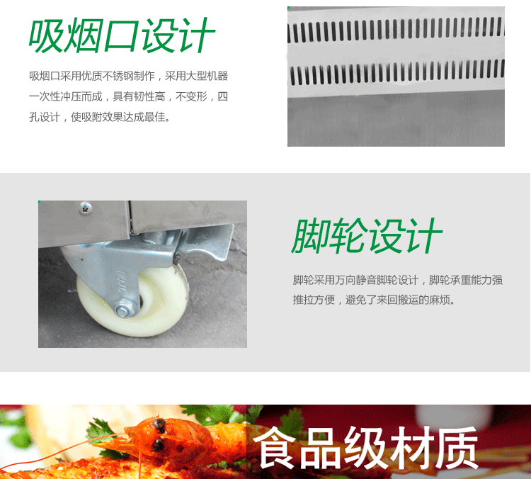 燒烤車(chē)是鐵山公司在多年制造油煙凈化設(shè)備實(shí)踐的基礎(chǔ)上,結(jié)合國(guó)內(nèi)外先進(jìn)的油煙凈化技術(shù),專(zhuān)門(mén)為碳烤肉串設(shè)計(jì)生產(chǎn)的一種新型環(huán)保油煙凈化裝置。該裝置有效的解決了碳烤肉串油煙對(duì)大氣的污染。屬于一體式凈化機(jī),取代傳統(tǒng)燒烤車(chē),無(wú)需安 裝,通電即可使用。