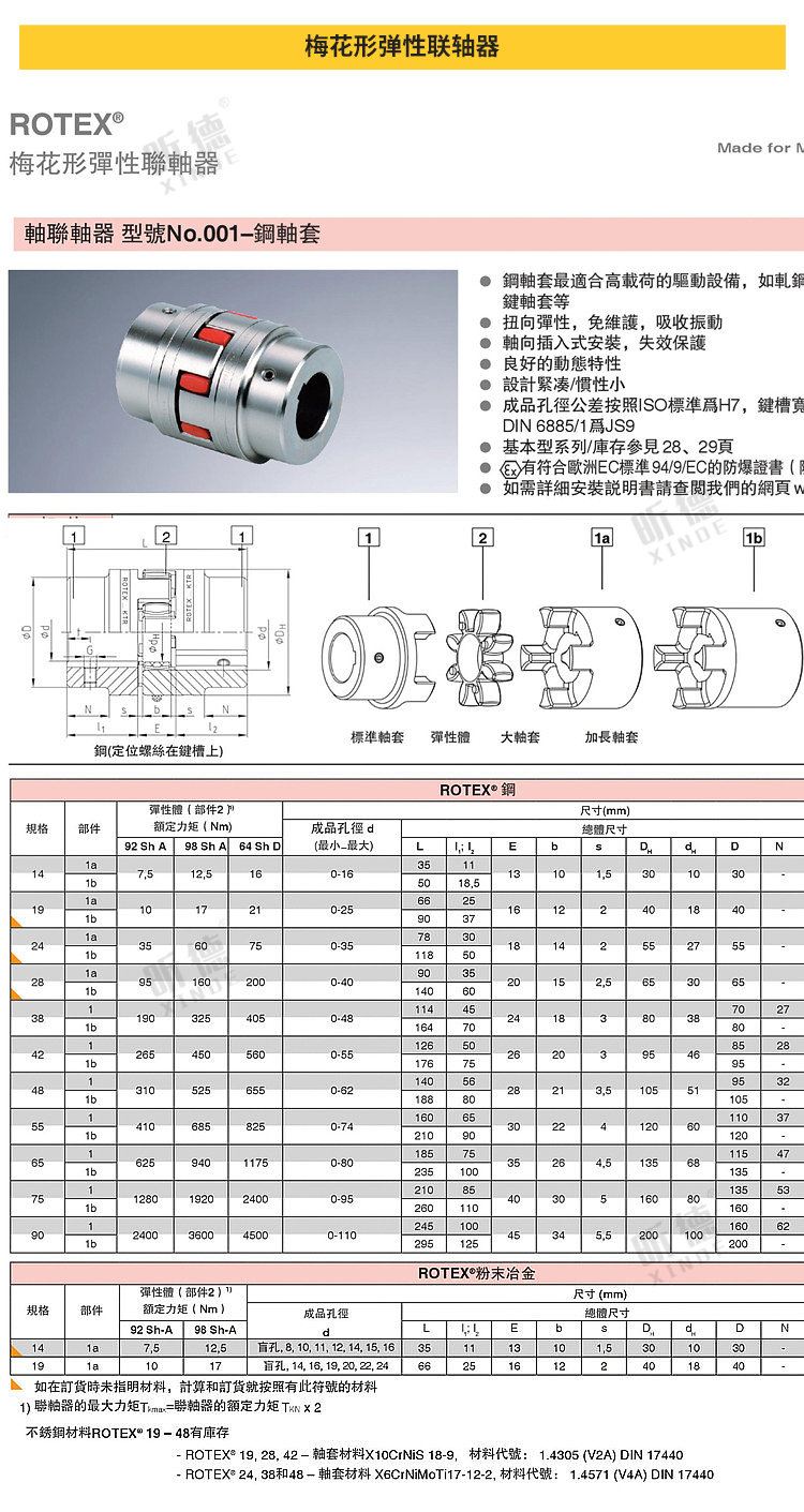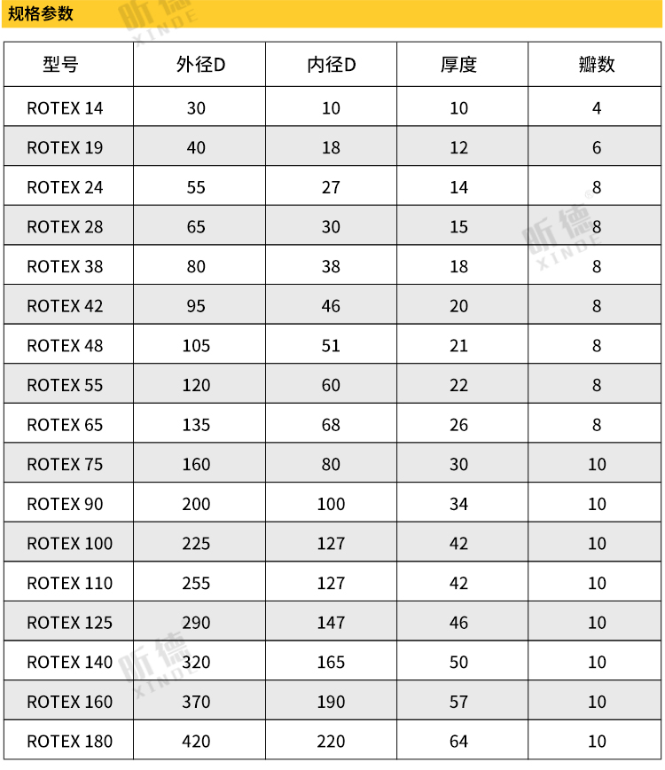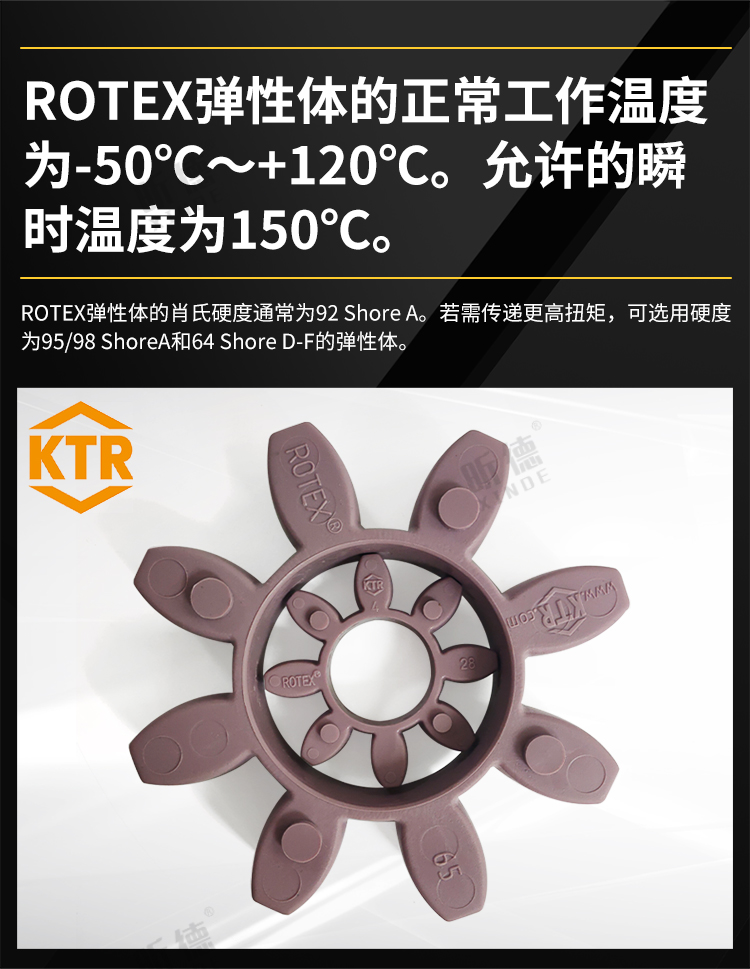 1.rotex彈性體的正常工作溫度為-50℃~+120℃。允許的瞬時溫度為150℃。