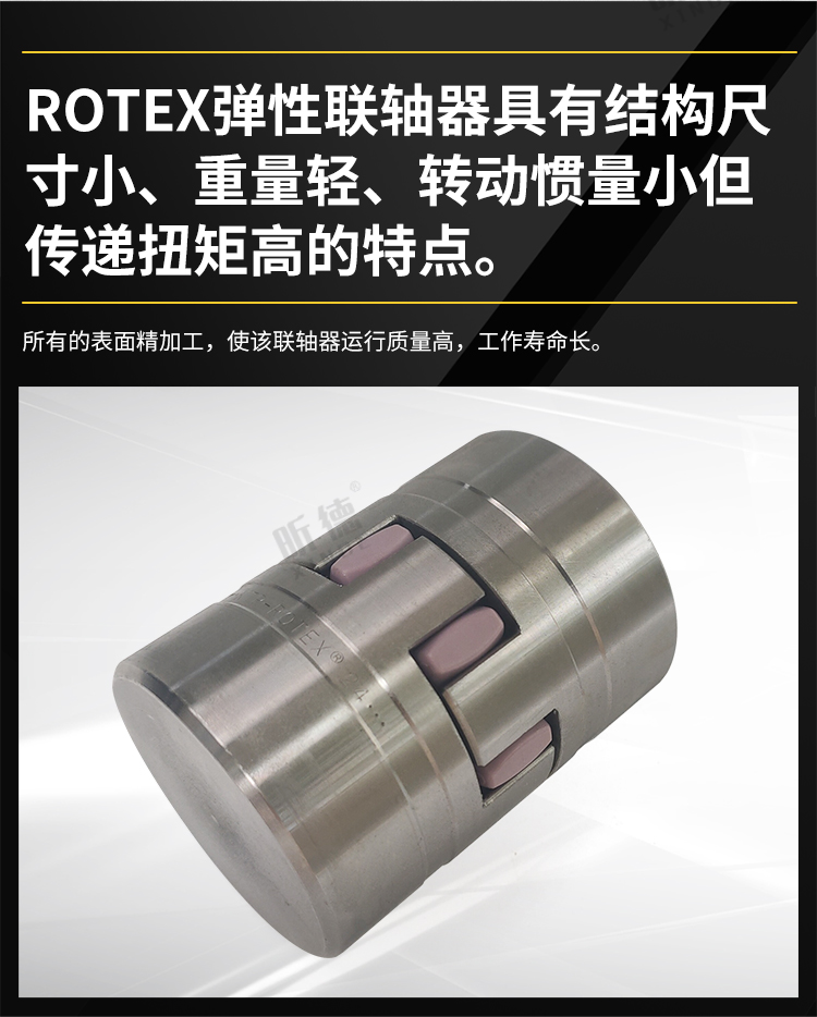 rotex彈性聯(lián)軸器具有結(jié)構(gòu)尺寸小、重量輕、轉(zhuǎn)動慣量小但傳遞扭矩高的特點。