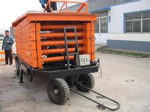 二輪牽引式液壓升降平臺 簡介:牽引式升降平臺是采用外來動力做牽引升降機械設(shè)備,利用三相電源、直流電源或柴油機做動力,移動方便快捷,適用于遠距離作業(yè)。