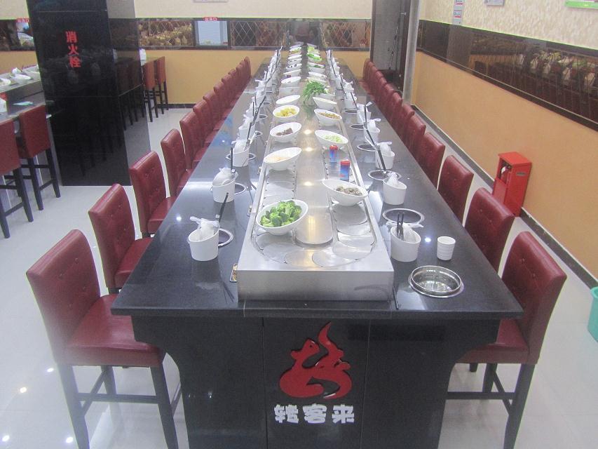 回轉(zhuǎn)火鍋設(shè)備的長度以輸送鏈條的展開長度計算,回轉(zhuǎn)設(shè)備的形狀、長度根據(jù)餐廳設(shè)計。