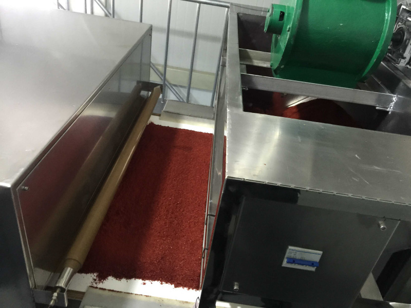 我公司最新研制的辣椒碎微波干燥滅菌設備徹底彌補了常規(guī)設備的不足。設備通過技術更新突破,對辣椒碎干燥殺菌處理時溫度可控制在95℃-110℃不變色、焦糊。因此細菌總數(shù)控制在10000以下,殺菌效果好,完全達到出口標準。新型設備電器采用了最高配置并優(yōu)化布局及冷卻系統(tǒng),因此經(jīng)久耐用,真正做到了高效節(jié)能。