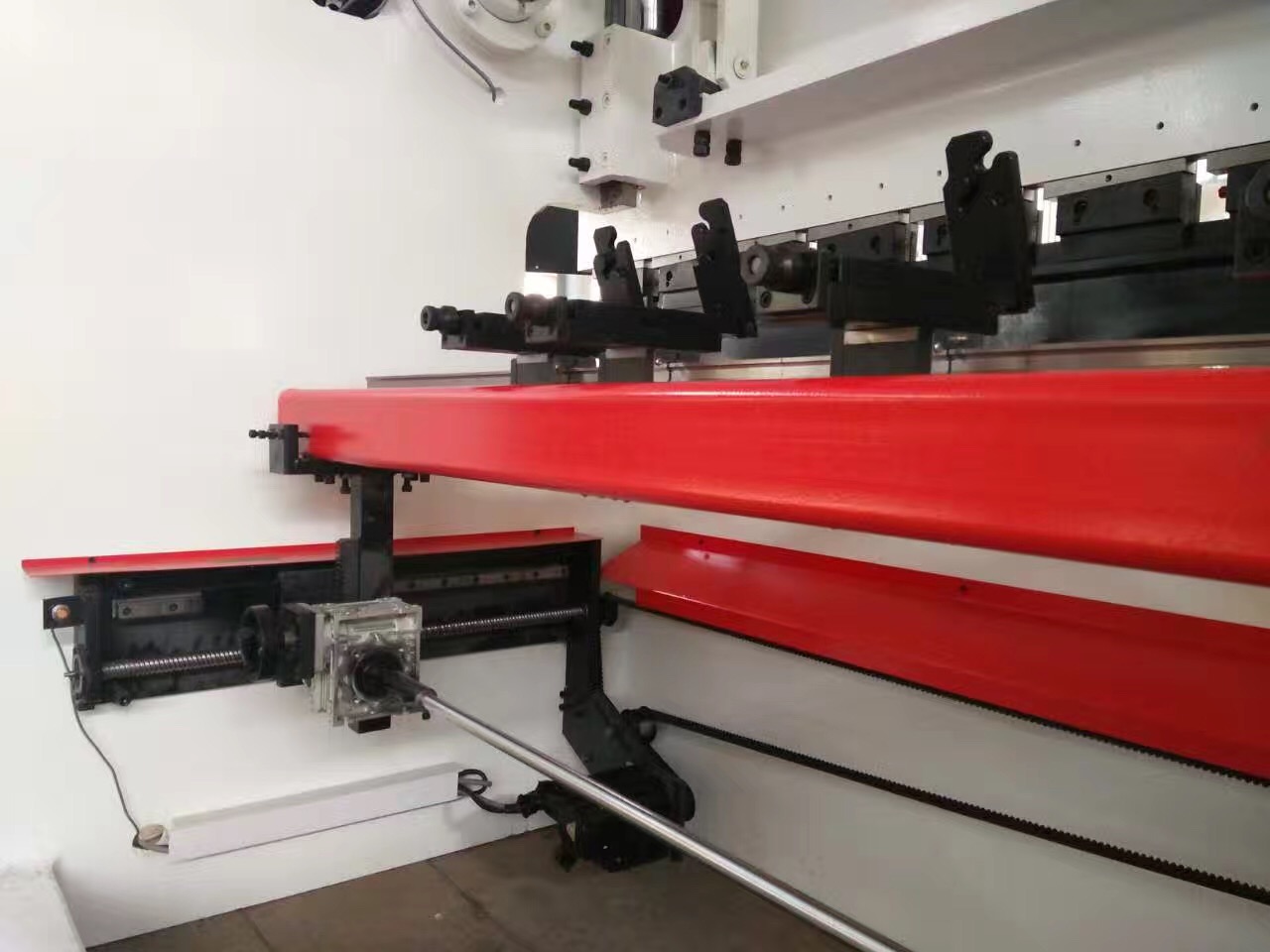 7.由于采用了扭軸同步形式使得機(jī)床在抗扭、抗偏載方面得到了很大的提高,工作臺(tái)、立柱、橫梁、滑塊的設(shè)計(jì)剛度較高,折彎時(shí)工作臺(tái)與滑塊的變形小,因此,制件有良好的直線度和角度的一致性;